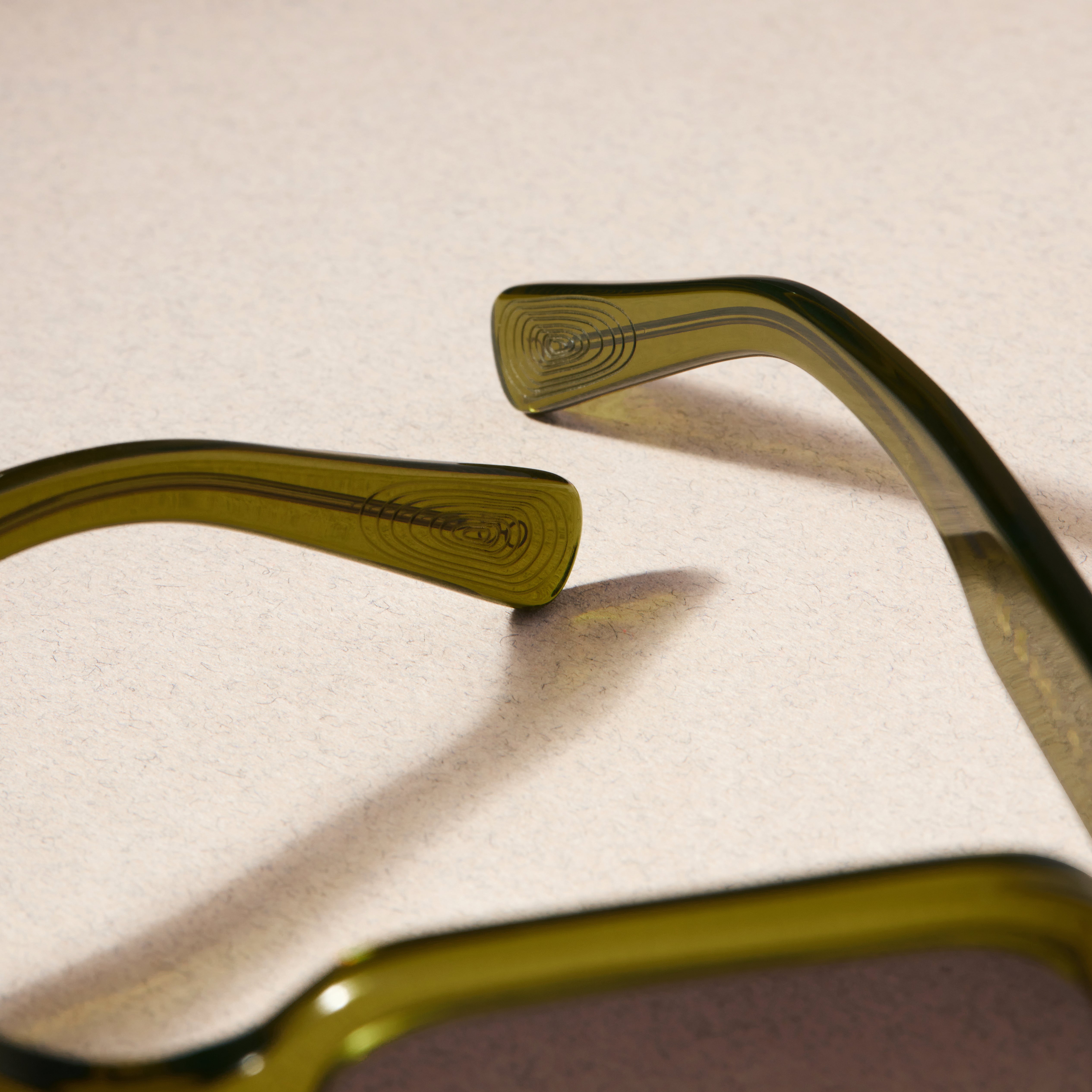 While all our frames are made from acetate, a cotton based alternative to traditional plastics, we choose to produce frames using bio-acetates that use a biodegradable glue designed to stand the test of time while treading more lightly on the planet. In store, we use sustainably sourced wood to build our interiors, bringing warmth and character without unnecessary waste.